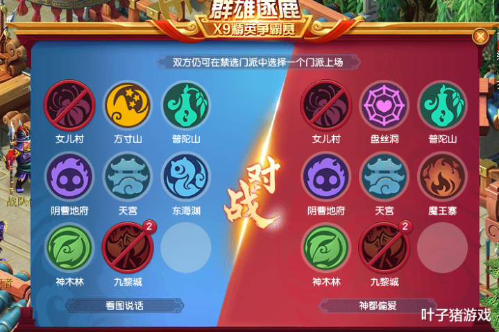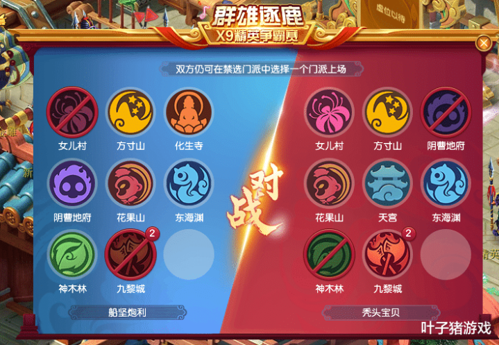 在禁选阶段,【船坚炮利】被禁女儿、九黎,【秃头宝贝】被禁地府、神木。根据禁选规则,双方可以选择一个门派复活。